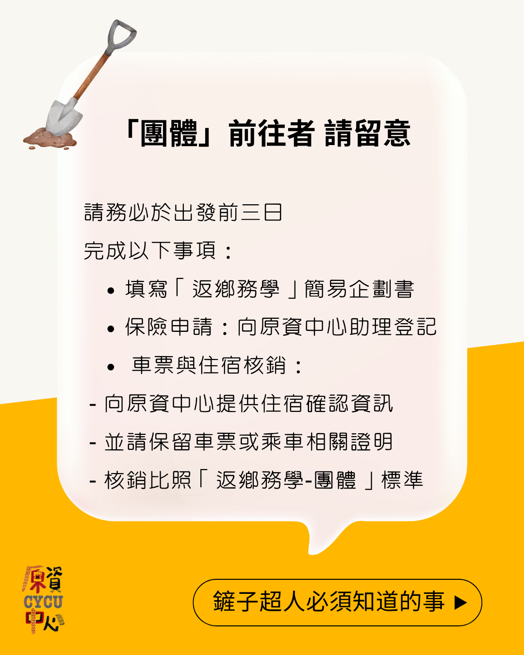 無論是自行前往或團體行動,出發前請先看這份 「志工懶人包」 再行動!