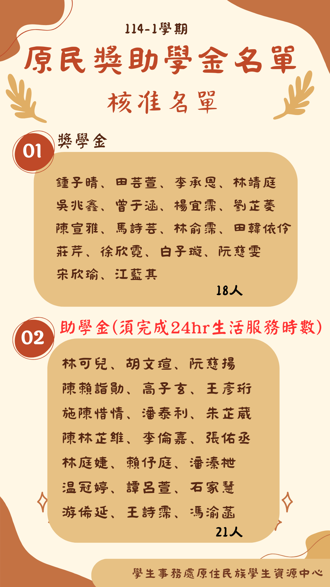 (6)獲獎名單經114年10月20日原住民學生獎助學金審查會議通過。