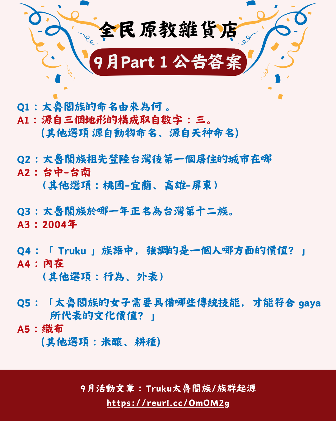 本學期第二波太魯閣族知識問答~~~